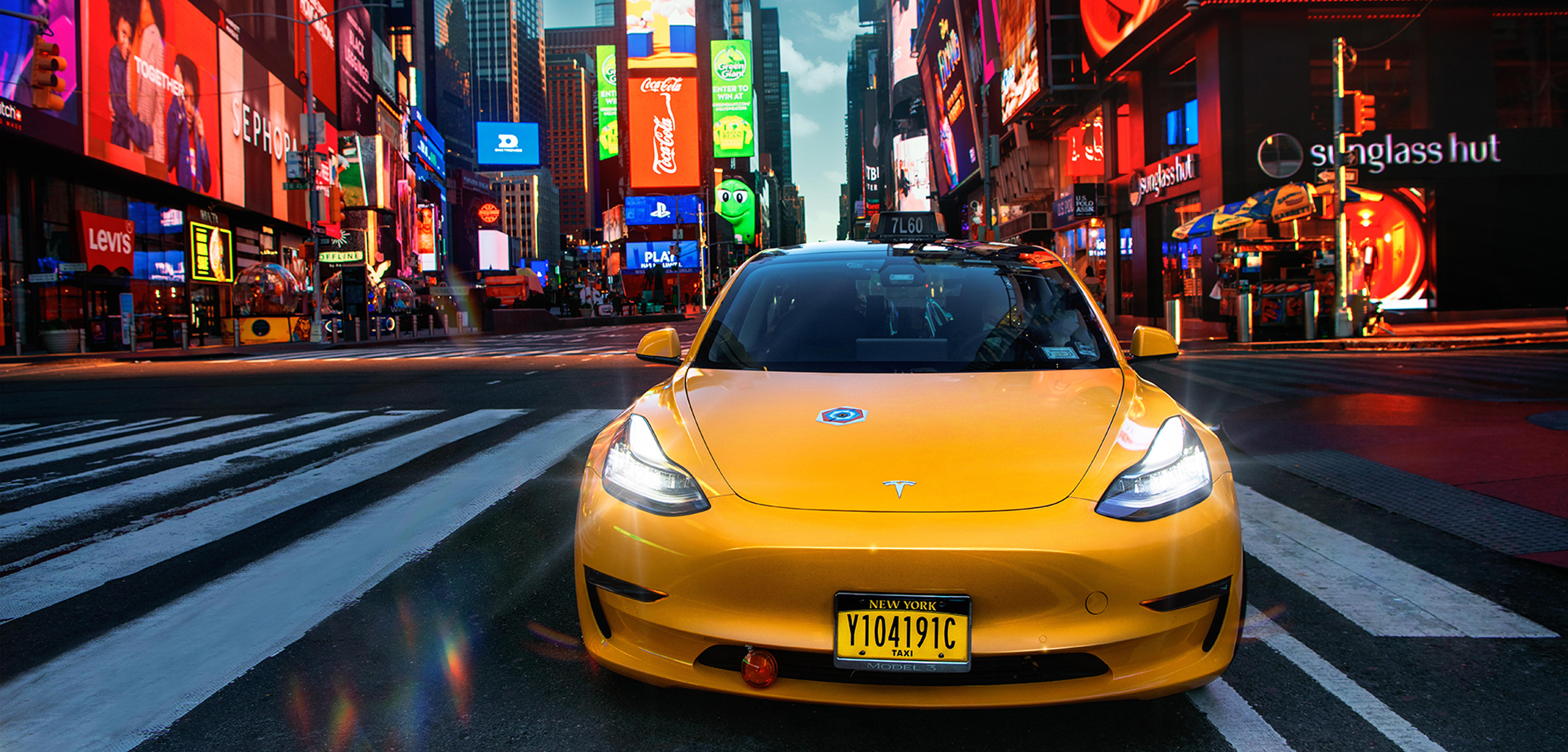 Allow me to recount an experience I had at Times Square on an early Sunday morning. Without any crowds or noise, the large illuminated advertisements fill the surroundings with vibrant colors. And bam! This sick yellow Tesla taxi came out of nowhere—so vibrant in the still morning.