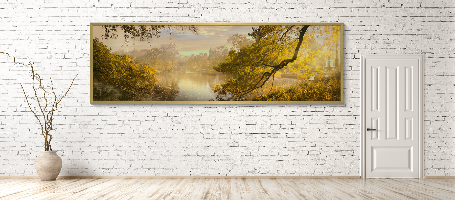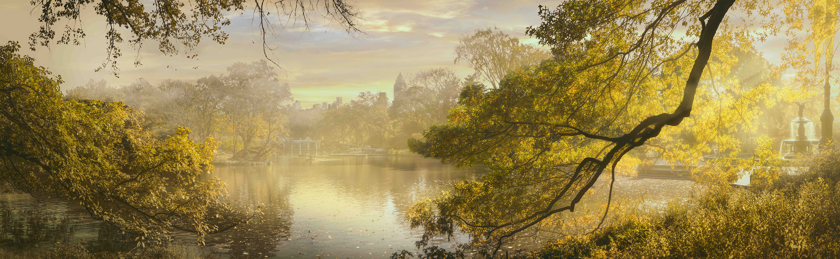 This photograph, taken near the Boathouse in Central Park, feels like a quiet painting come to life. Soft golden light pours through the trees, wrapping the whole scene in a warm, peaceful glow. The reflections on the lake are gentle and still, like the world paused just long enough to let you breathe it in.