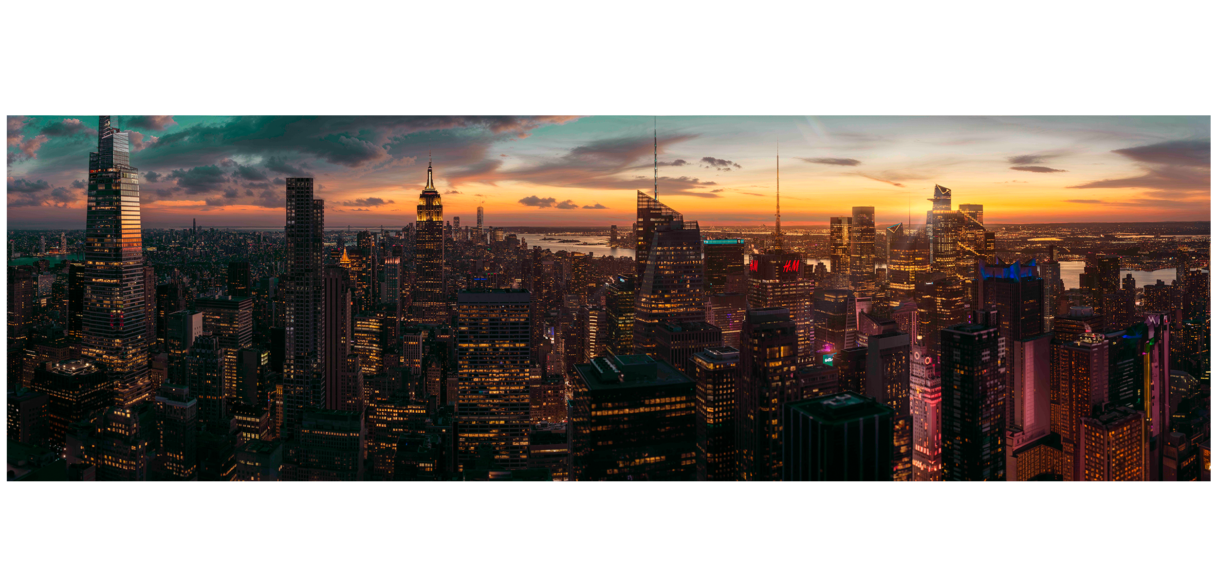 The skyline stretches wide, pulsing with life.
