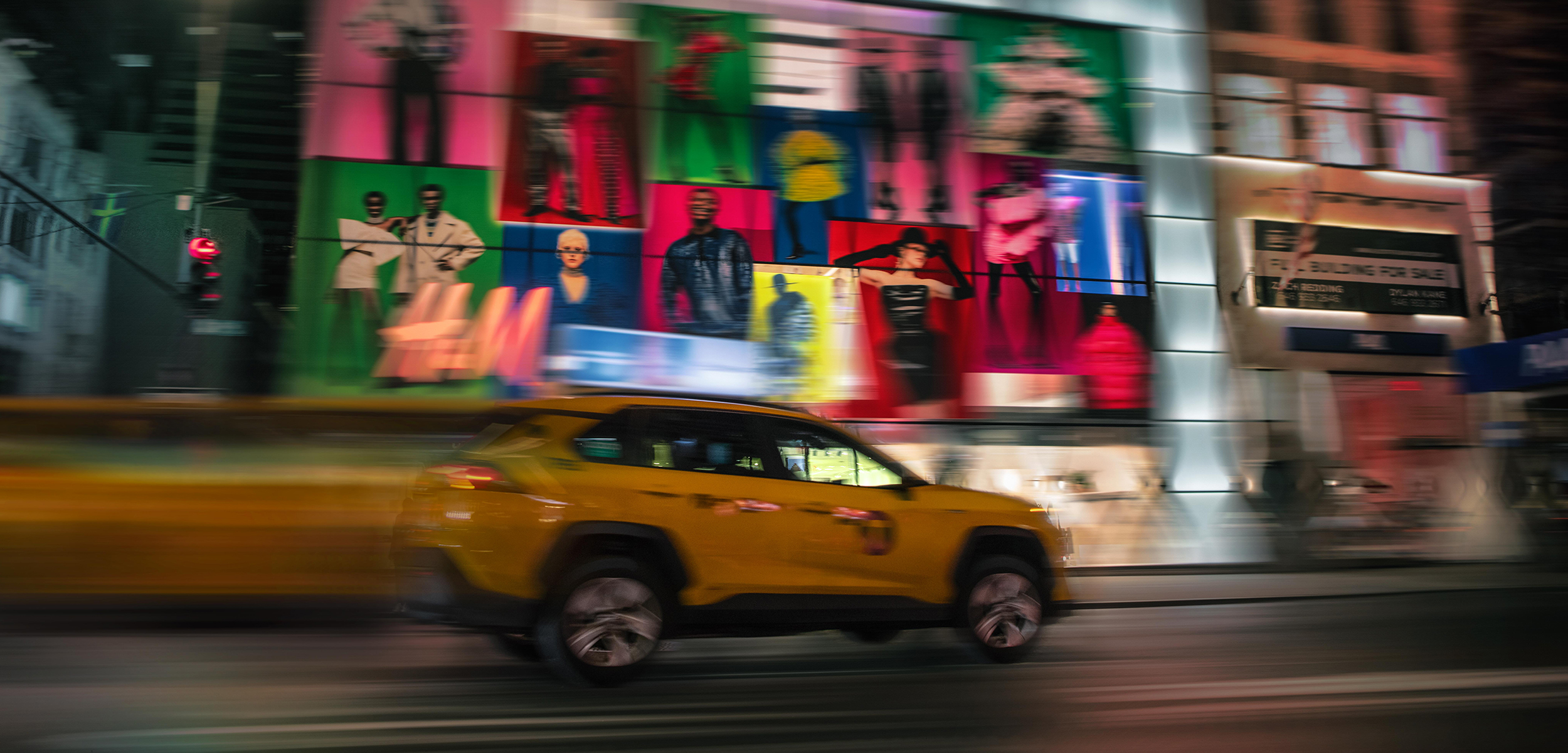 Subsequently, a yellow taxi swiftly passed, appearing as a streak of yellow paint in my line of sight. I quickly snapped a picture with my camera. Too beautiful to pass up! Fatigue vanished when I took that photo. I found a touch of magic in the city.